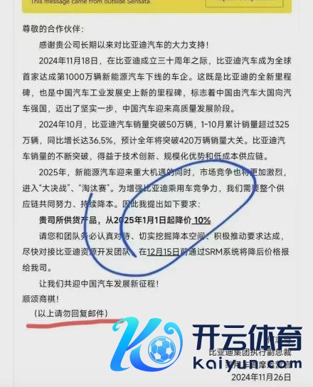 网易财经11月27日讯近日,一封主题为《2025年比亚迪(002594)乘用车降本条款》的邮件在网罗高尚传。邮件骨子显现,比亚迪条款关联供应商所供货居品从2025年1月1日起降价10%。