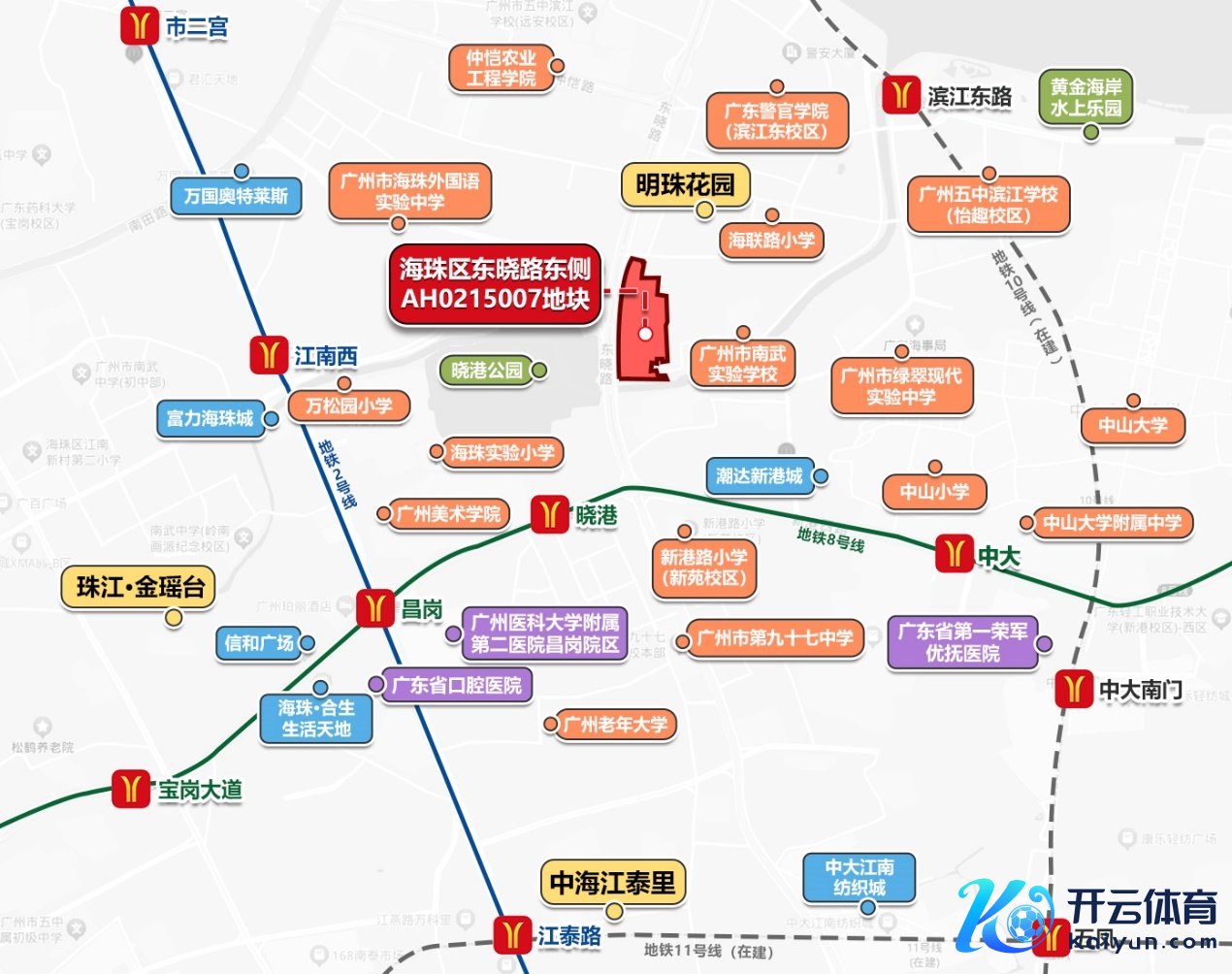 在轨说念交通方面,神气地块相近地铁2号线和8号线,其中距离8号线晓港站约600米,走路约10分钟可达。地块旁的东晓路是海珠区主要交通干说念,已往海珠湾纯正通车后交通将愈加便利。
