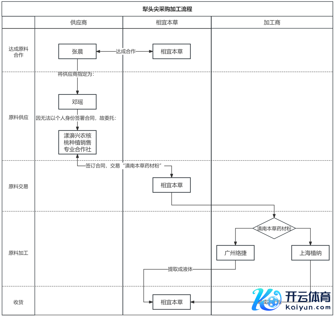 2022年7月,相宜本草期间中心在阐发期间诡秘及工艺的转让完成后,张晨将供应商指定为“彝族传承东谈主”邓瑶(假名),由其负责组织原料采摘和粗加工。随后,邓瑶因无法以个东谈主身份与相宜本草签署合同,便请托漾濞兴农核桃栽种销售专科互助社代为销售。