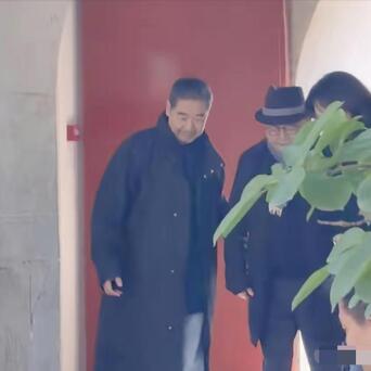 张国立打扮很幽闲,玄色皮风衣、直筒牛仔裤,显得年青不少。