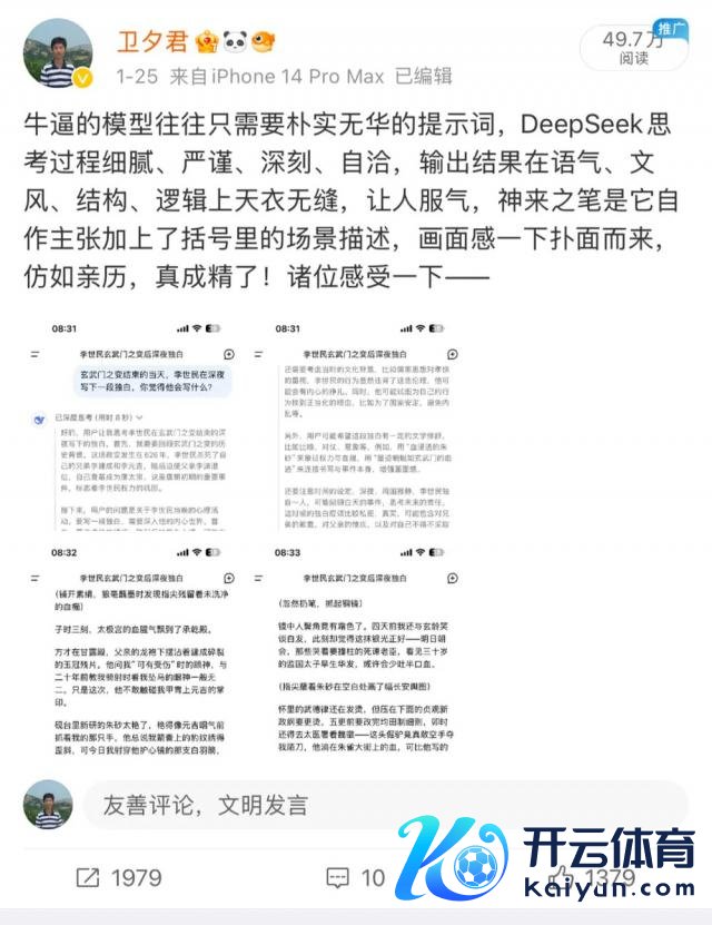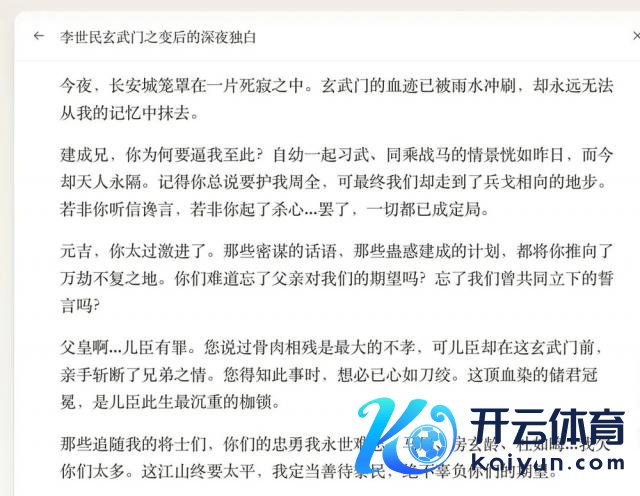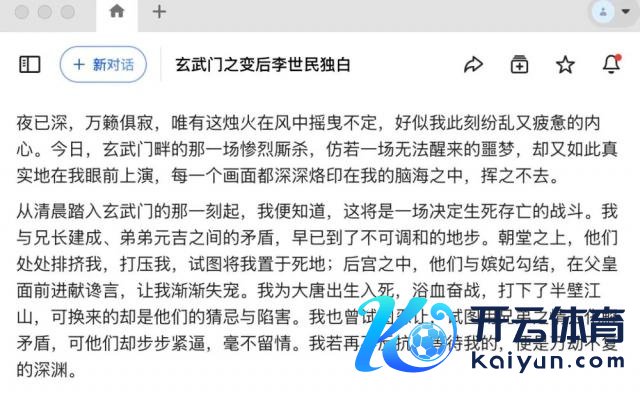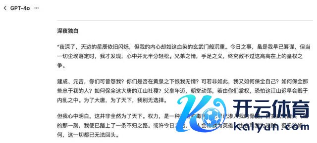 李世民行为千古一君,毫不可能用上头四家输出闭幕那样傻的口吻话语,而 DeepSeek 也并莫得效劲过猛,用相对古典的翰墨但并莫得径直用文言文,温存地兼顾了可读性。