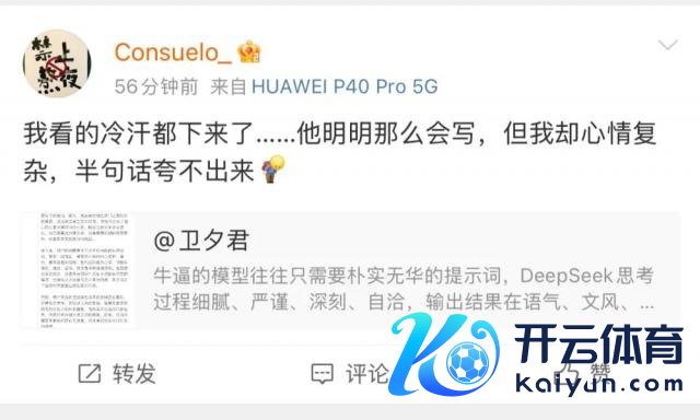 在揭晓 AI 的惊艳回答之前,我们先来看微博上一个网友对 DeepSeek 输出闭幕的一条评述: